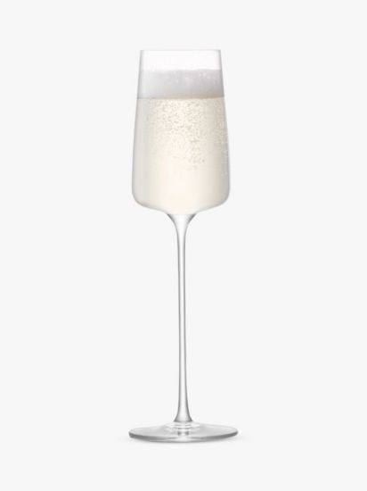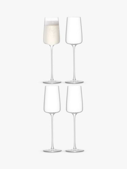 • Our glassware collection features modern, angular shapes. This set of four flute-shaped glasses from the collection was made by Polish glassware experts. The long stem keeps the contents of the glass cold. The narrow bowl retains bubbles when you drink champagne, prosecco and sparkling wine. The glassware is dishwasher safe.